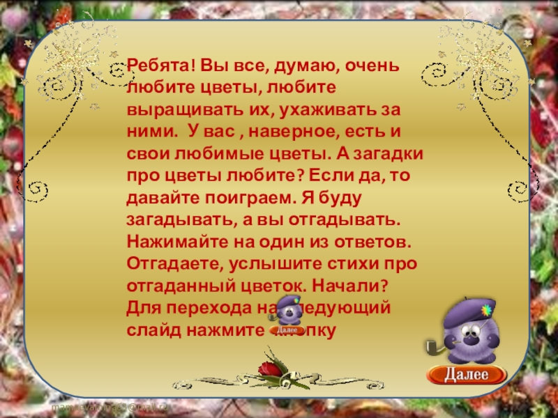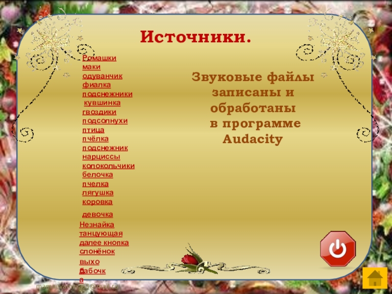 Это сайт презентаций, где можно хранить и обмениваться своими презентациями, докладами, проектами, шаблонами в формате PowerPoint с другими пользователями. Мы помогаем школьникам, студентам, учителям, преподавателям хранить и обмениваться учебными материалами.