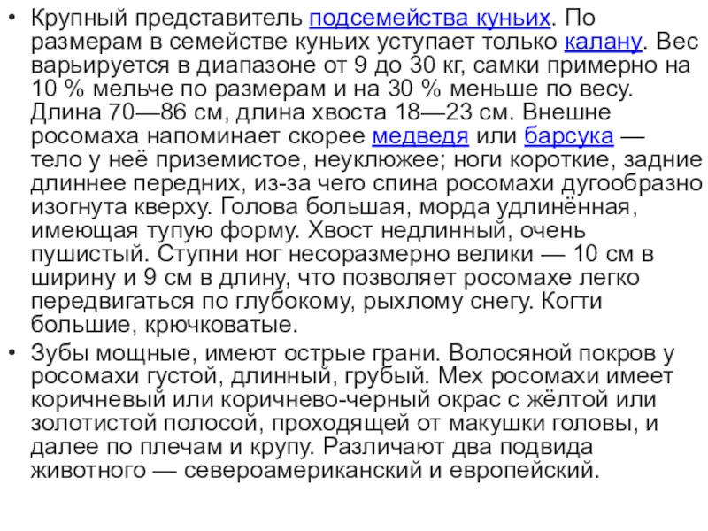 Царство:ЖивотныеТип:ХордовыеПодтип:ПозвоночныеКласс:МлекопитающиеОтряд:ХищныеСемейство:КуньиРод:Росомахи