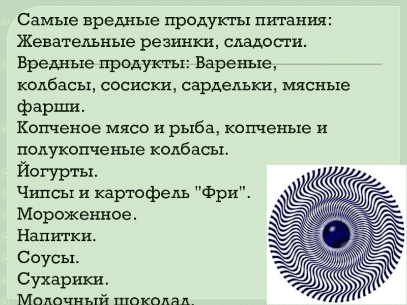 Слайд 10Список вредных продуктов: