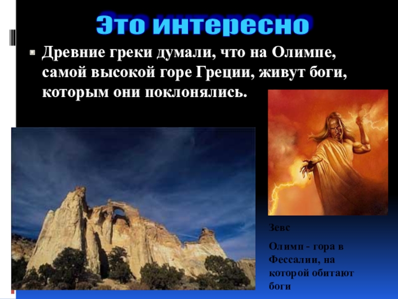 Олимп - гора в Фессалии, на которой обитают боги