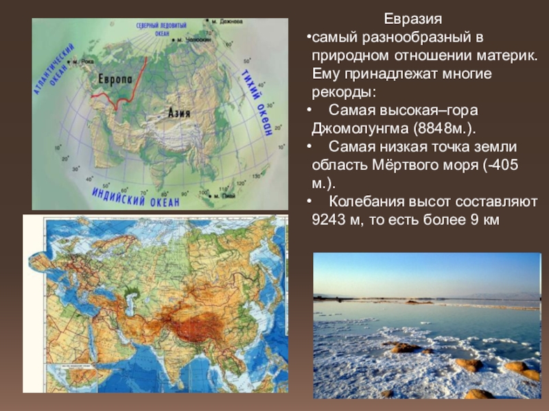 Материк Евразия — величайший массив суши на Земле, где живет более половины ее населения.