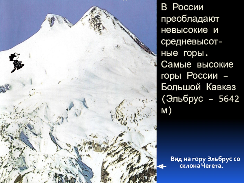 Вид на гору Эльбрус со склона Чегета.