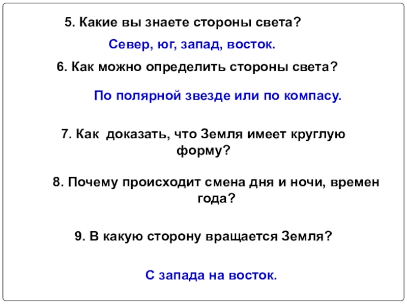8. Почему происходит смена дня и ночи, времен года?