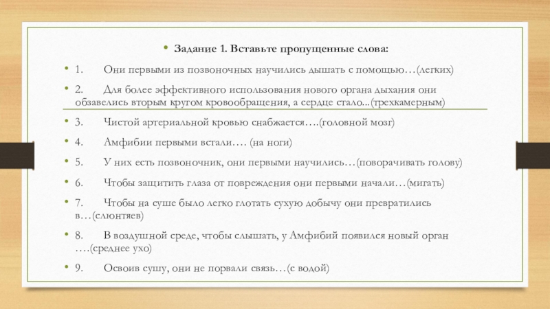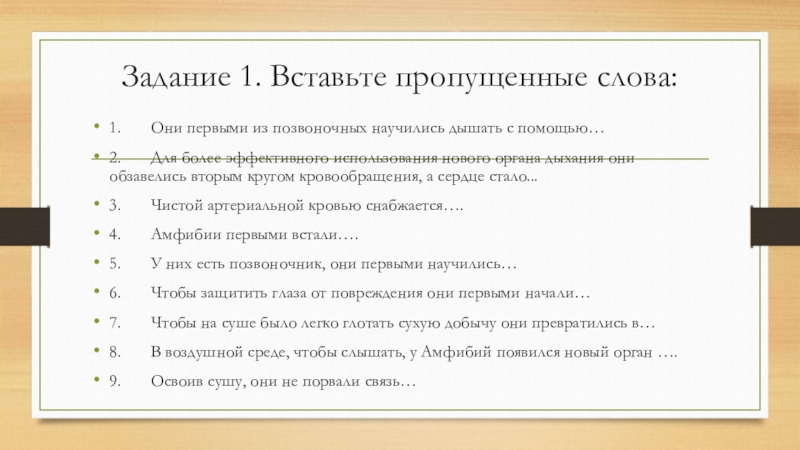 Слайд 17Задание 1. Вставьте пропущенные слова: