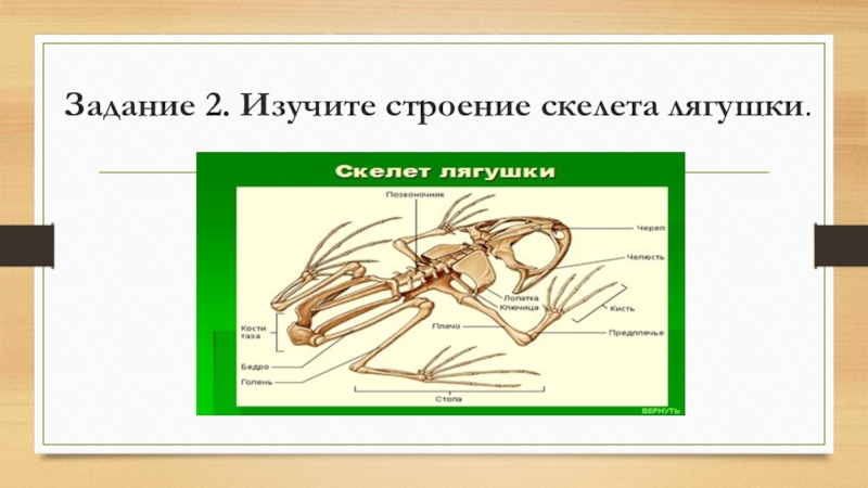Слайд 10Задание 2. Изучите строение скелета лягушки.