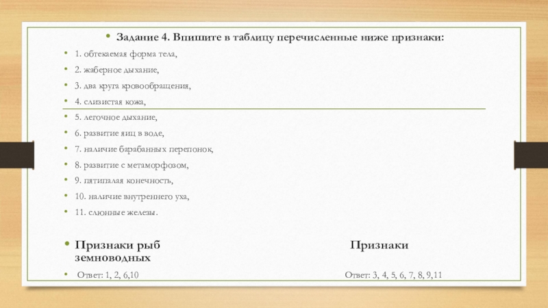 Слайд 19Задание 4. Впишите в таблицу перечисленные ниже признаки: