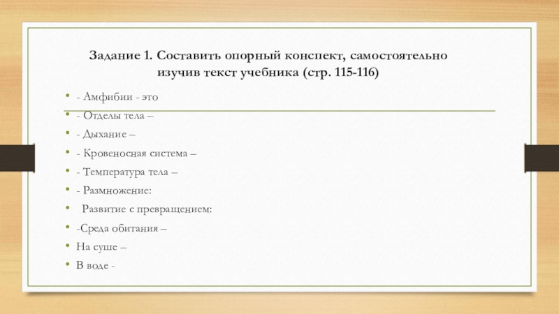 Слайд 8Задание 1. Составить опорный конспект, самостоятельно