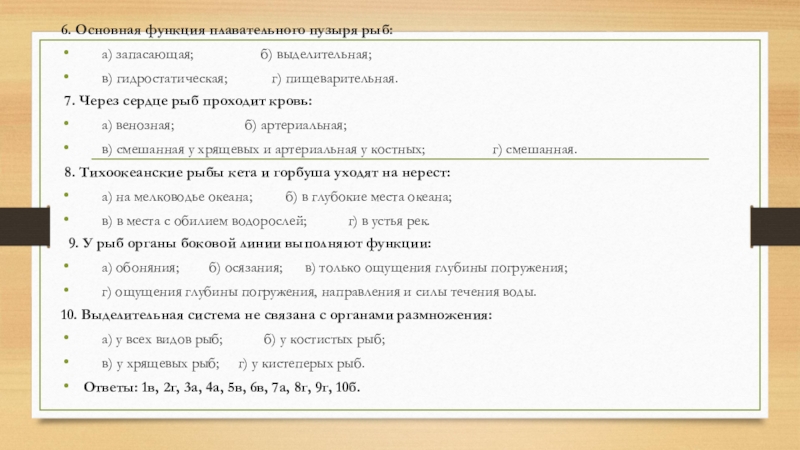 Слайд 36. Основная функция плавательного пузыря рыб: