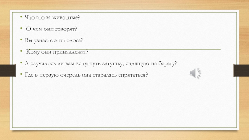 • Биологическую сказку о Земноводных.