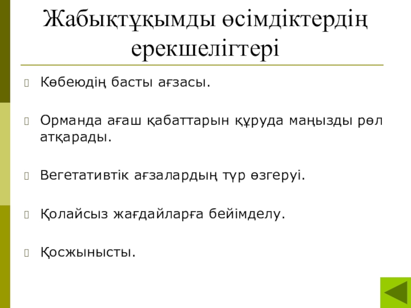 Слайд 3Жабықтұқымды өсімдіктердің ерекшелігтері