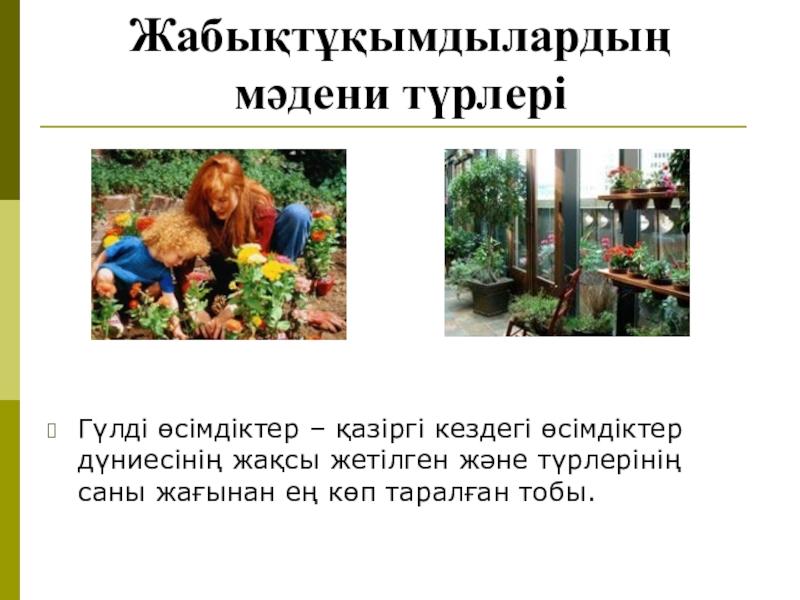 Жабықтұқымдылардың мәдени түрлеріГүлді өсімдіктер – қазіргі кездегі өсімдіктер дүниесінің жақсы жетілген және түрлерінің саны жағынан ең көп