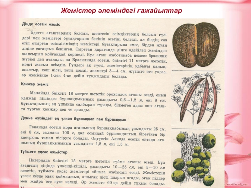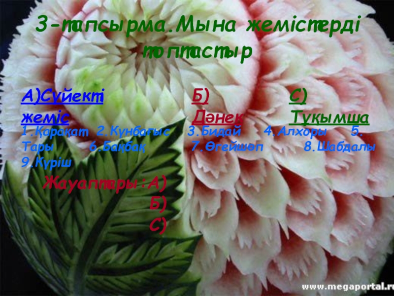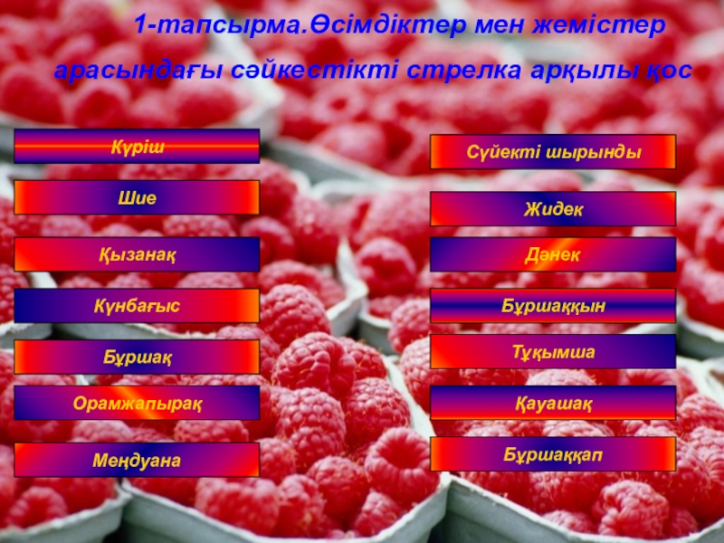 1.Жер жаңғағы 2.Қарабидай 3.Шегіргүл 4.Шие 5.Саумалдақ