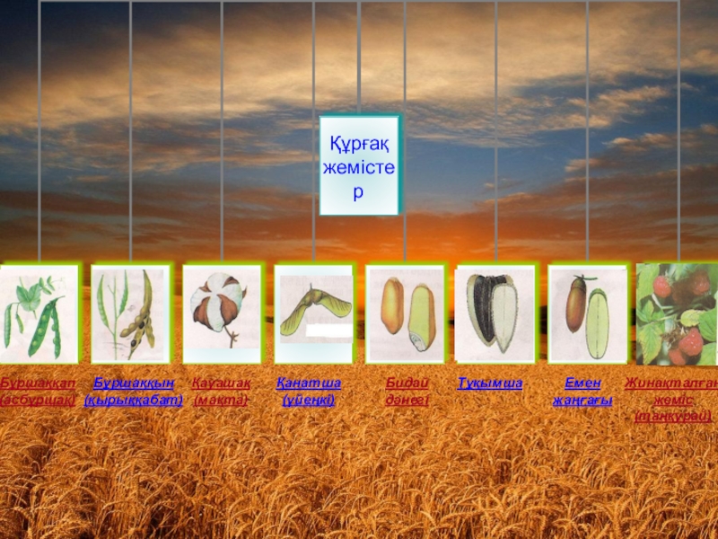 Қауашақ;Бұршаққын;Жидек;Жаңғақ;Бұршаққап;Қанатша
