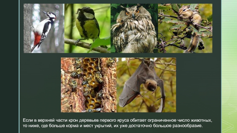Слайд 9Если в верхней части крон деревьев первого яруса обитает ограниченное число