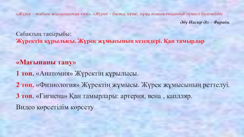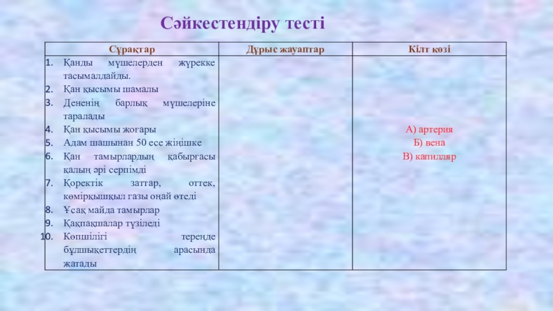 3 топ. «Гигиена» Қан тамырлары: артерия, вена , каплляр.