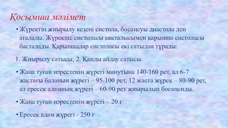 2 топ. «Физиология» Жүректің жұмысы. Жүрек жұмысының реттелуі.