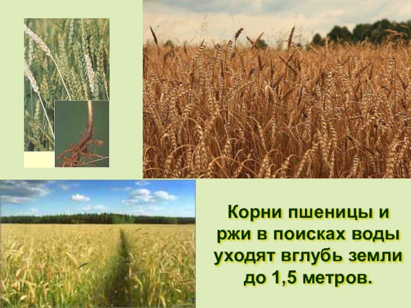 Слайд 8Корни пшеницы и ржи в поисках воды уходят вглубь земли до