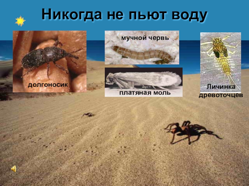 Никогда не пьют водудолгоносикмучной червьплатяная мольЛичинка древоточцев