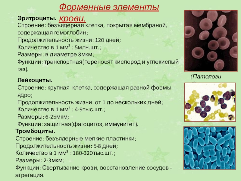 Функции: Свертывание крови, восстановление сосудов - агрегация.