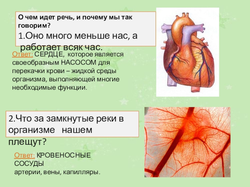 Ответ: СЕРДЦЕ, которое является своеобразным НАСОСОМ для перекачки крови – жидкой среды организма, выполняющей многие необходимые функции.
