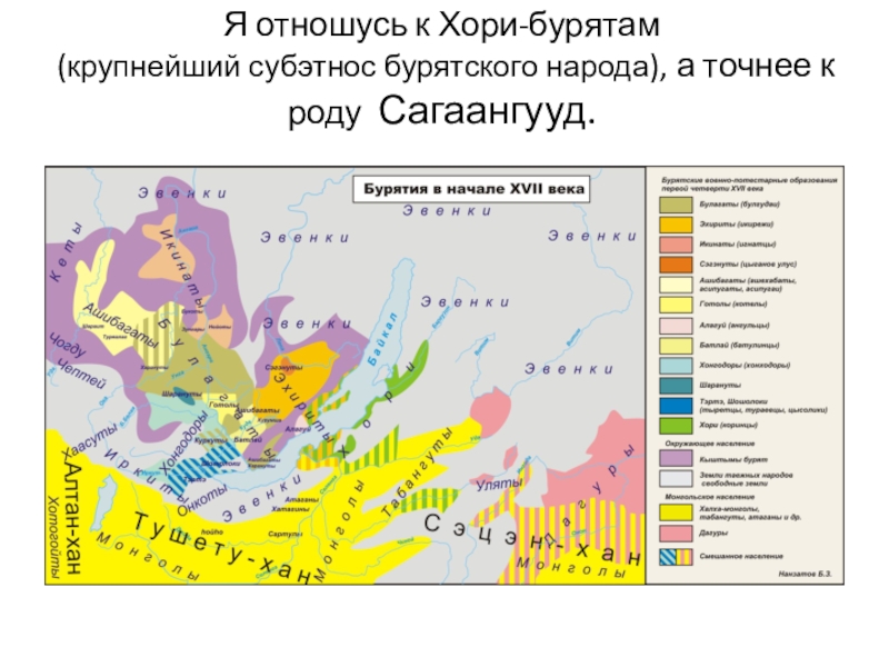 Слайд 2Я отношусь к Хори-бурятам(крупнейший субэтнос бурятского народа), а точнее к роду Сагаангууд.