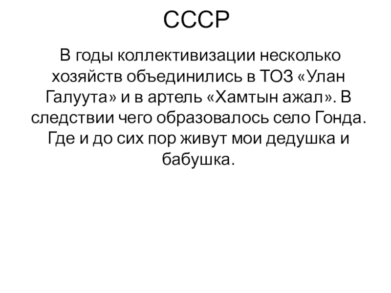 в артель «Хамтын ажал». В следствии чего образовалось село Гонда. Где и до сих пор живут мои дедушка и бабушка.