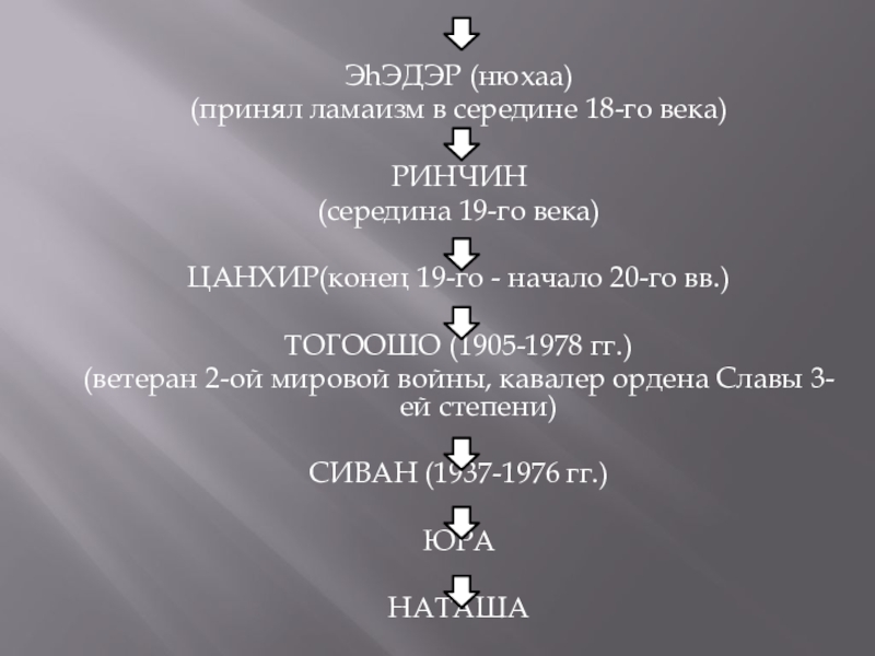 является предком нашей семьи. Родился в местности Улзы Добо (недалеко от современного улуса Оронгой