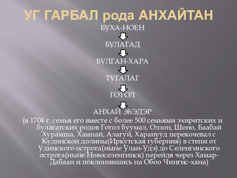Слайд 5УГ ГАРБАЛ рода АНХАЙТАН