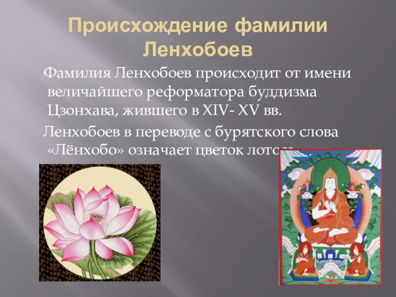 Фамилия Ленхобоев происходит от имени величайшего реформатора буддизма Цзонхава,