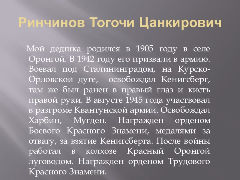 Мой дедшка родился в 1905 году в селе Оронгой.