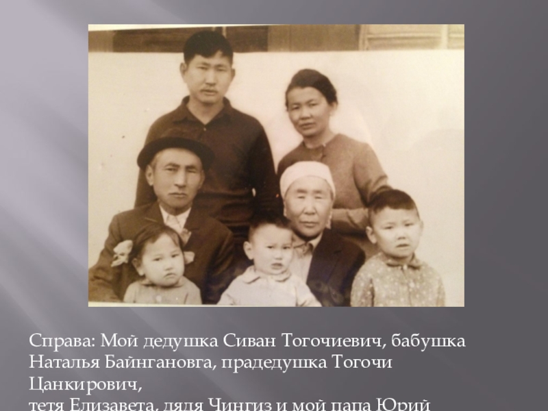 Слайд 11Справа: Мой дедушка Сиван Тогочиевич, бабушка