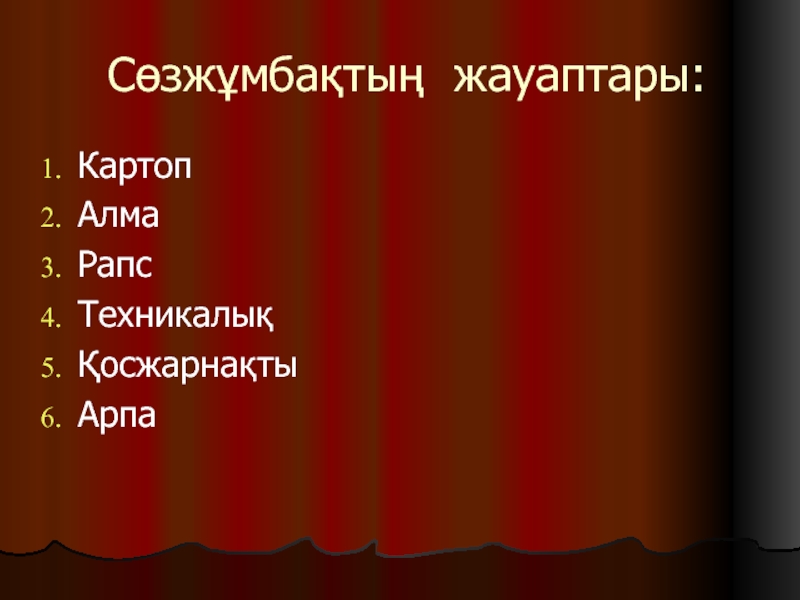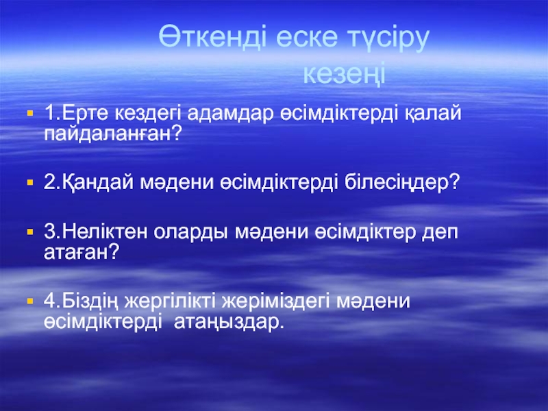 2.Қандай мәдени өсімдіктерді білесіңдер?