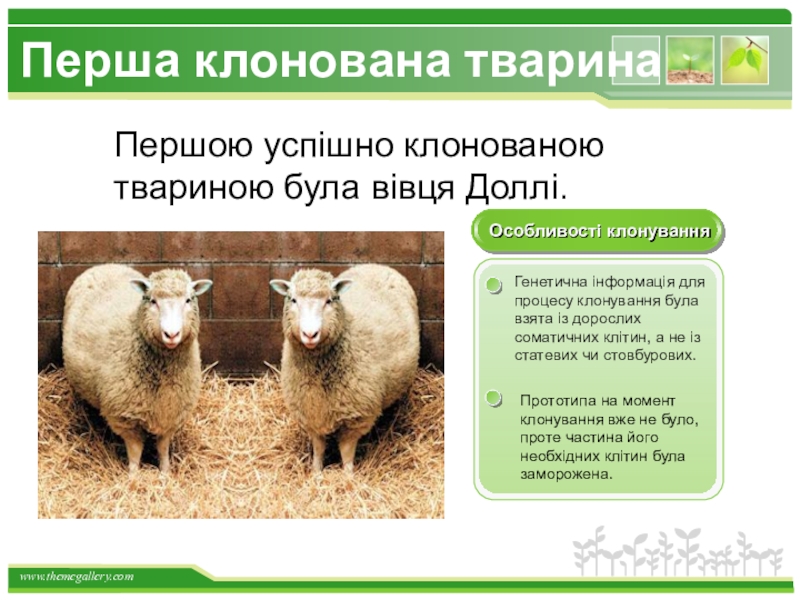 Прототипа на момент клонування вже не було, проте частина його необхідних клітин була заморожена.