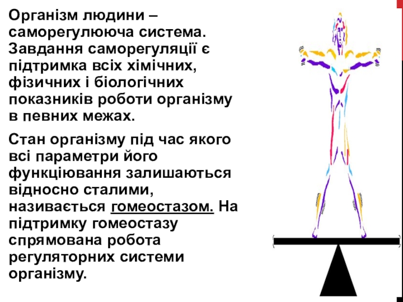 Слайд 5Організм людини – саморегулююча система. Завдання саморегуляції є підтримка всіх хімічних,