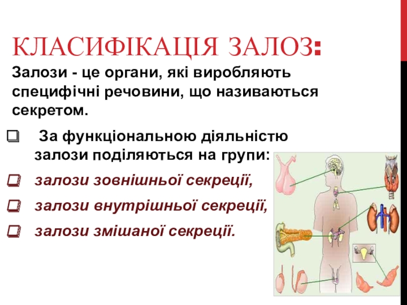 Залози - це органи, які виробляють специфічні речовини, що називаються