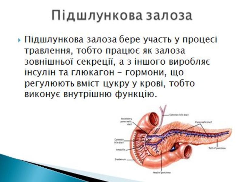 сік, який виділяється через протоку в 12-палу кишку, та виділяє гормони, які регулюють кількість цукру у крові.