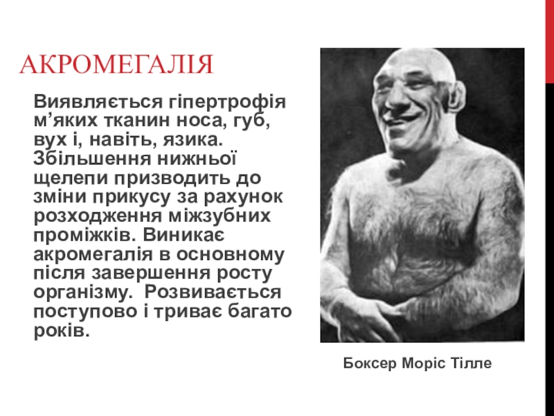 Акромегалія— захворювання,пов’язане із порушенням функції передньої долі гіпофіза.