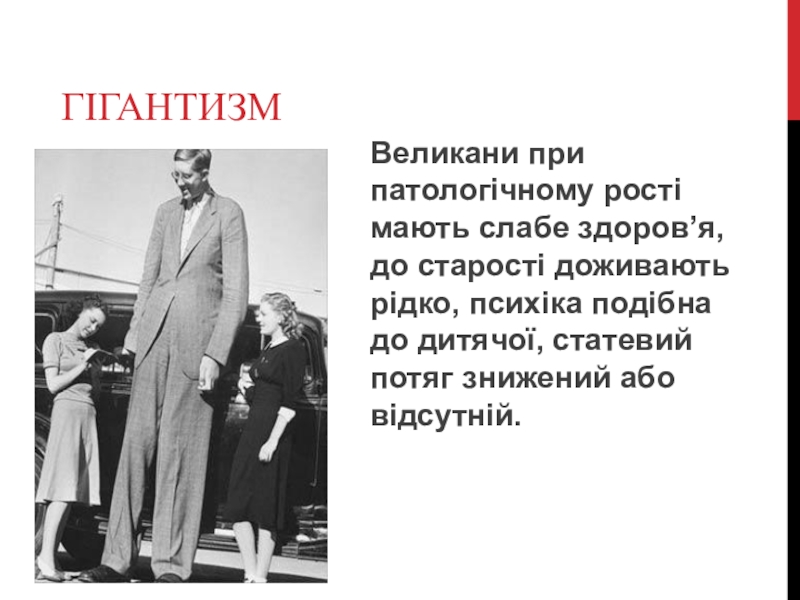 Великани при патологічному рості мають слабе здоров’я, до старості доживають