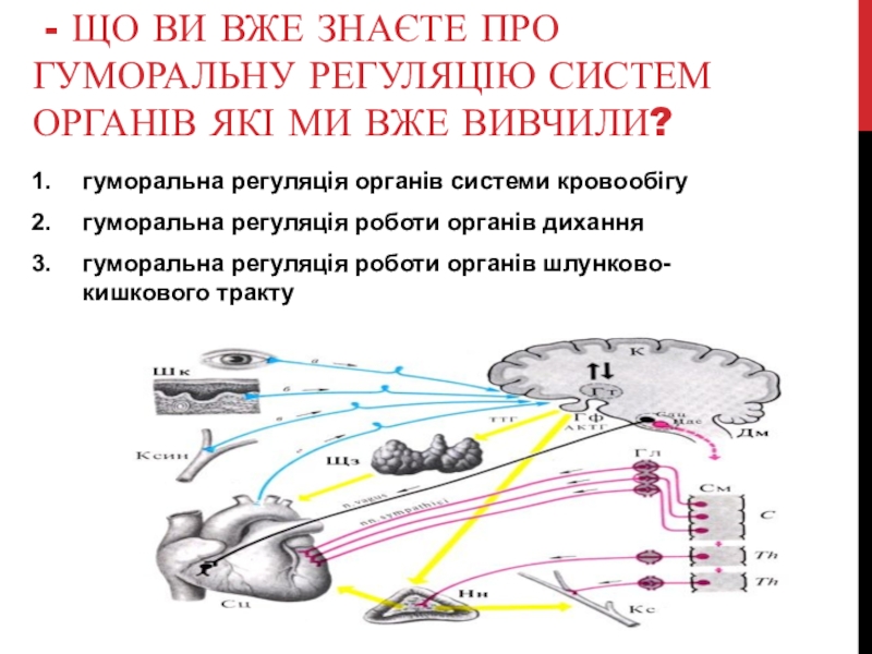 Слайд 7 - Що ви вже знаєте про гуморальну регуляцію систем органів