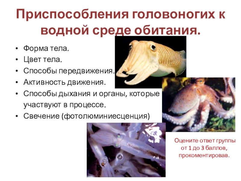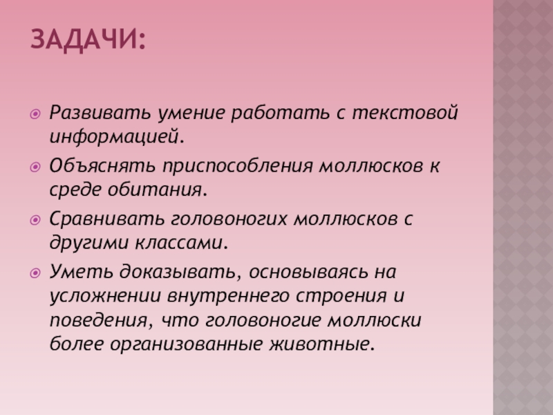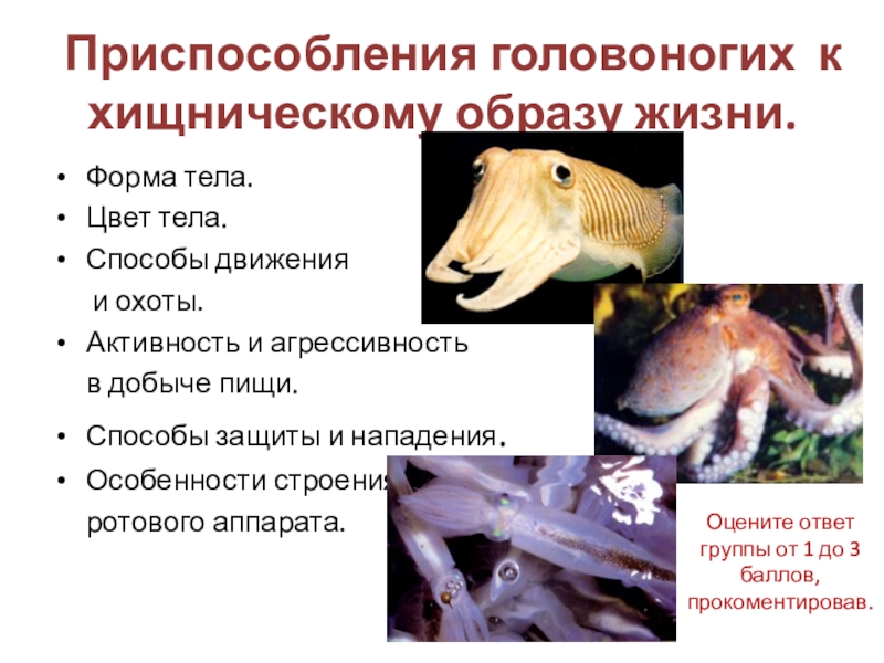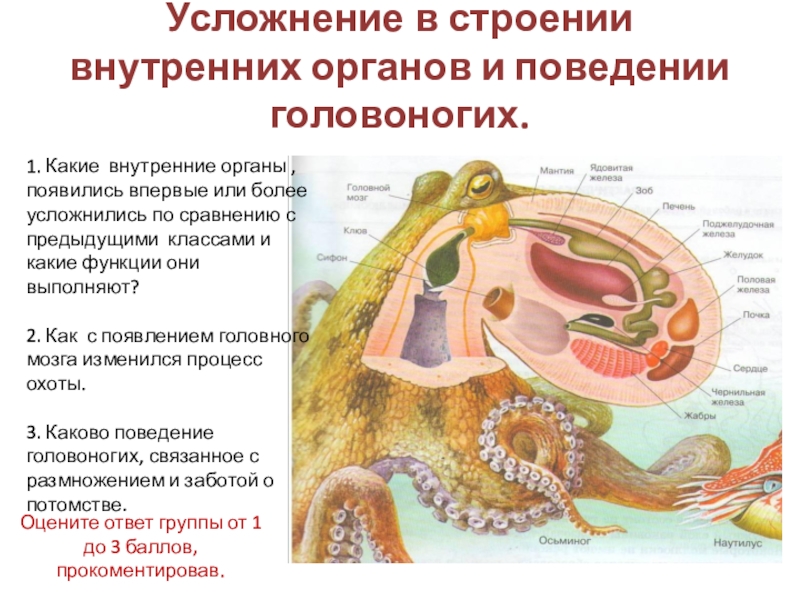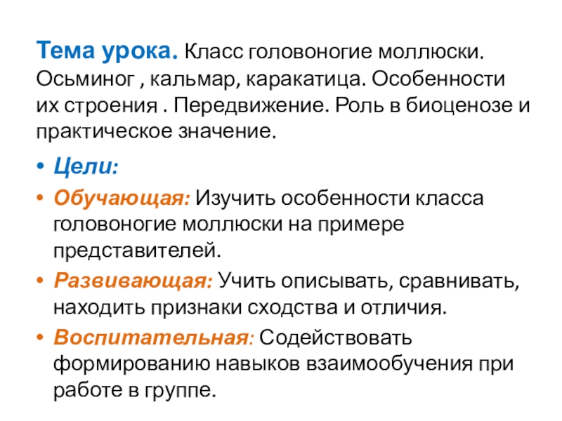 Обучающая: Изучить особенности класса головоногие моллюски на примере представителей.