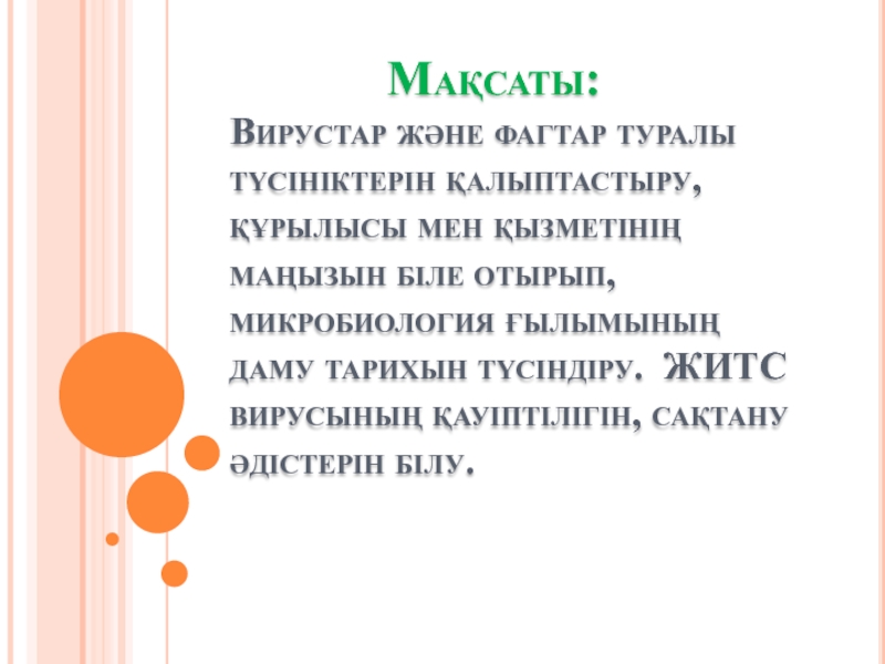 Слайд 2 Мақсаты: Вирустар және фагтар