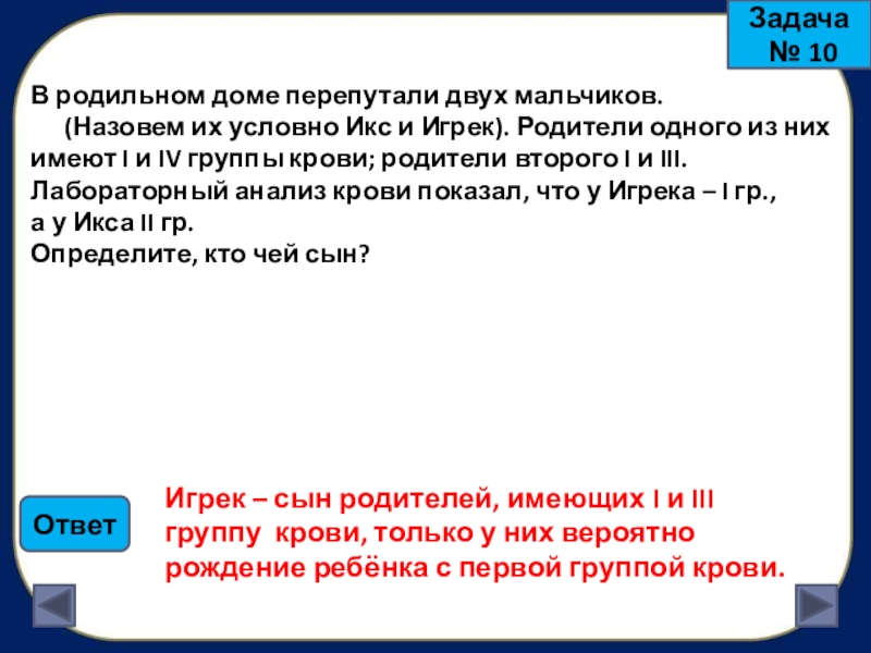 Игрек – сын родителей, имеющих I и III