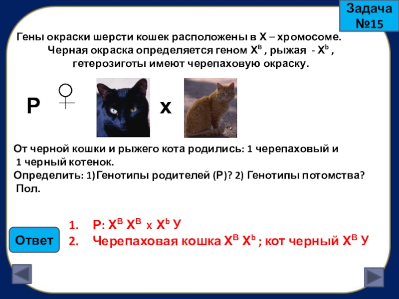 Черепаховая кошка ХВ Хb ; кот черный ХВ У