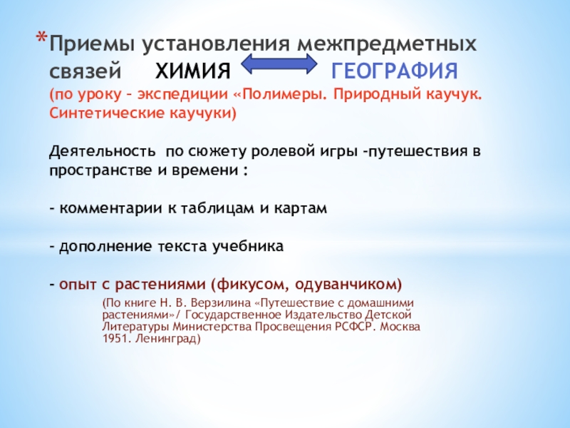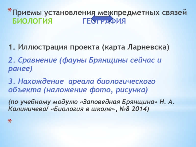 Приемы установления межпредметных связей на уроках химии, биологии, географии