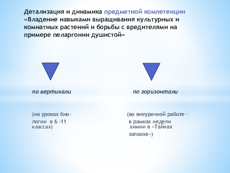Детализация и динамика предметной компетенции «Владение навыками выращивания культурных и комнатных растений и борьбы с вредителями на примере пеларгонии душистой»