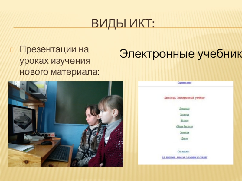 Слайд 3Некоторые виды икт, которые целесообразно использовать на уроках биологии