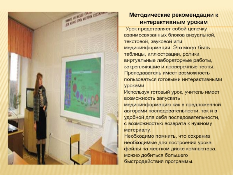 Необходимо помнить, что сохранив необходимые для построения урока файлы на жестком диске компьютера, можно добиться большего быстродействия программы.