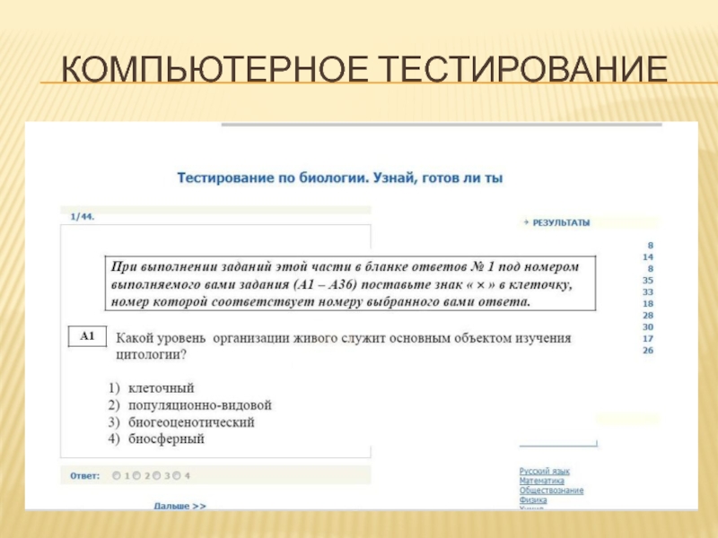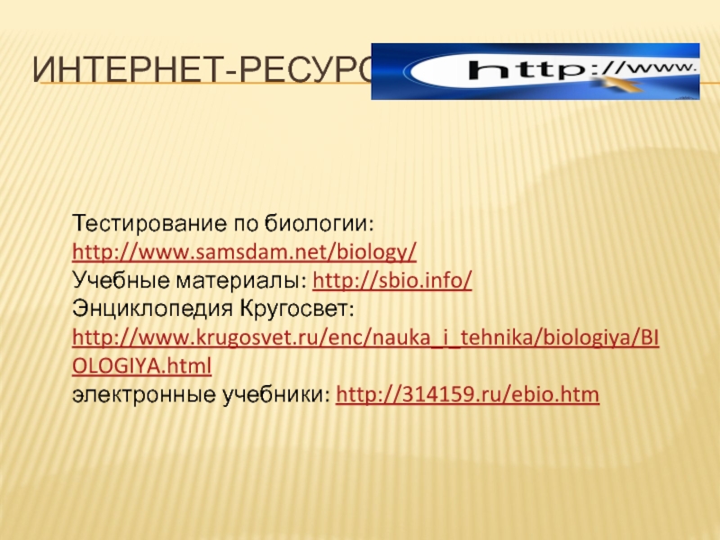 Тестирование по биологии: http://www.samsdam.net/biology/