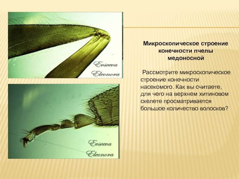 Слайд 14Микроскопическое строение конечности пчелы медоносной