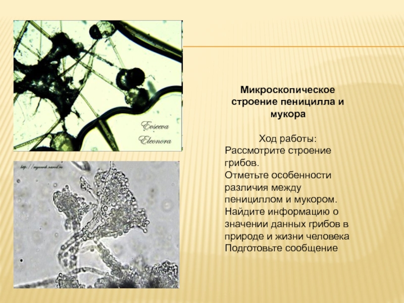 Слайд 11Микроскопическое строение пеницилла и мукора
